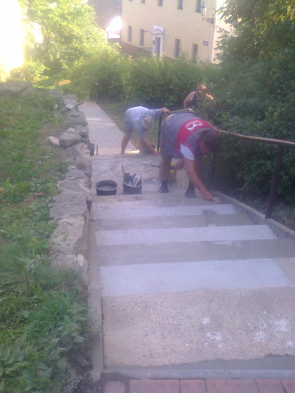 Opravu schodů jsme zadali firmě SUPER-SAN, kde pracuje 15 peručanů, na snímku pan I.Imbr a S. Dolínek