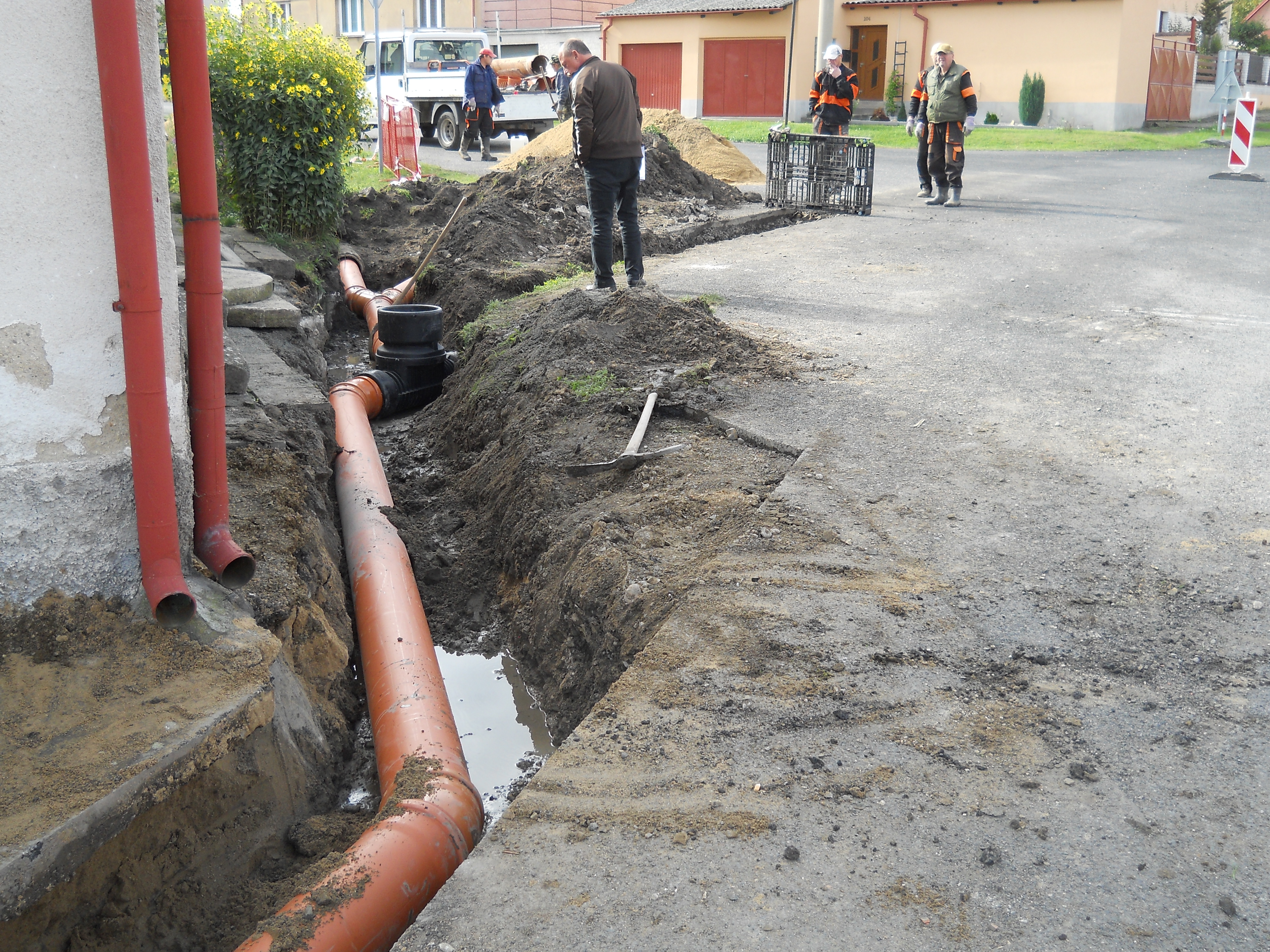 - Popis: Na pátku u č.p. 6 byla provedena přeložka vodotečné kanalizace na žádost majitele nemovitosti, pro vsakování vod do slepních prostor domu. Narošené betonové potrubí vyměněno za utěsněné PVC DIN 250 vč certifikované šachty bylo provedeno v režii Městyse Peruc v nákupní ceně materiálů za 29 300Kč. Asfaltáž provede firma EKOSTAVBY Louny za vhodných klimatických podmínek v ceně díla 21 500Kč