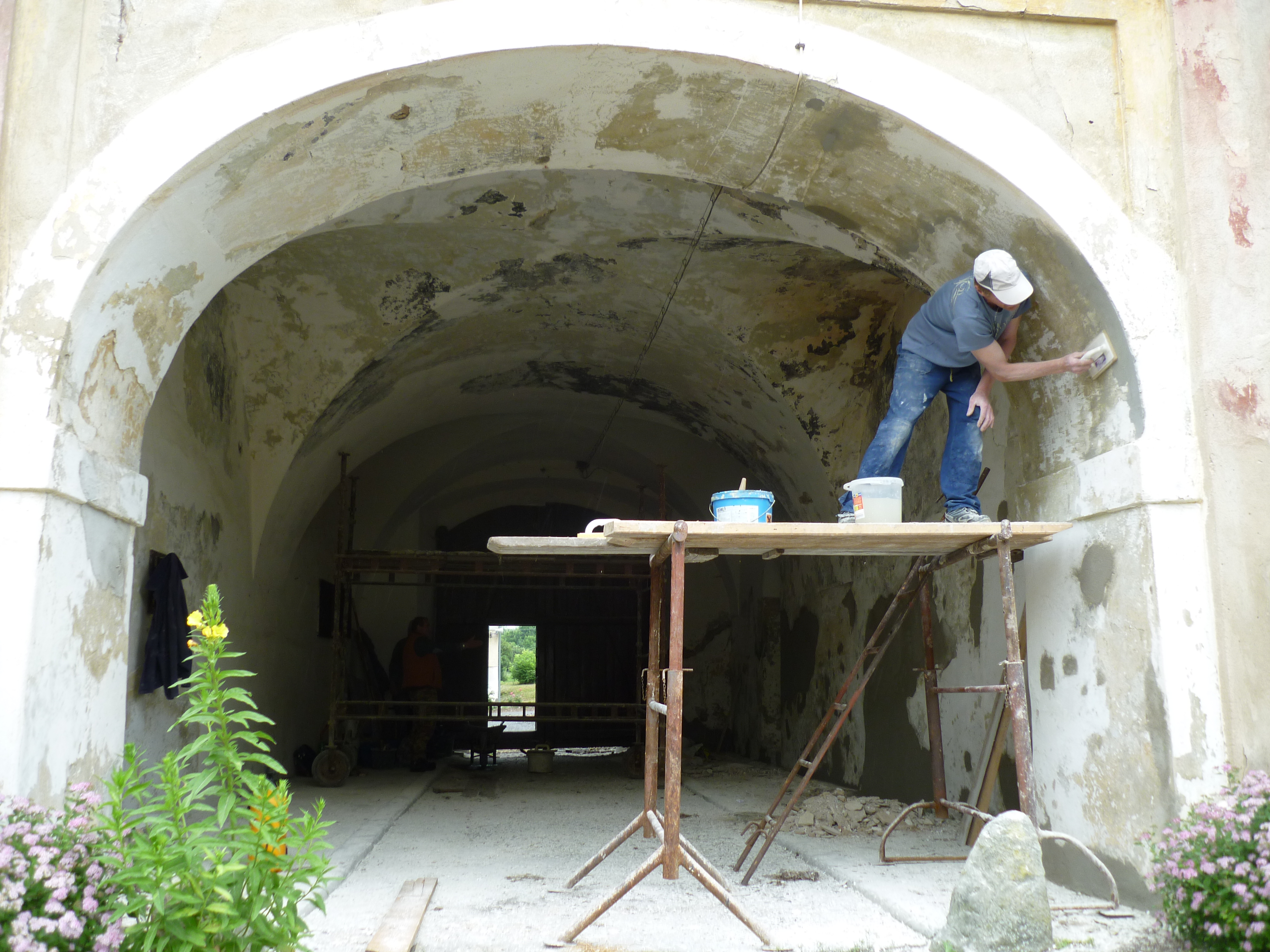 - Popis: Oprava průchodu v zámku na Pátku před zahájením sezony - provedli zaměstnanci provozu